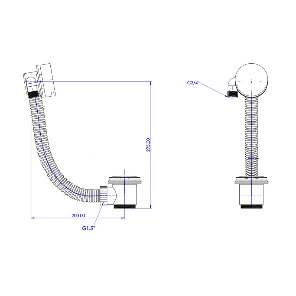 While the bath waste is installed into the base of your bath, it is accompanied by an overflow bath filler that is located just above it, mounted into the side of your bathtub. Measuring 275mm in height and 200mm in depth, the bath filler features a rectangular slot on the front of its round face in lieu of a spout, from which your bath water will begin to fall once initiated by your separate bath mixer valves.
