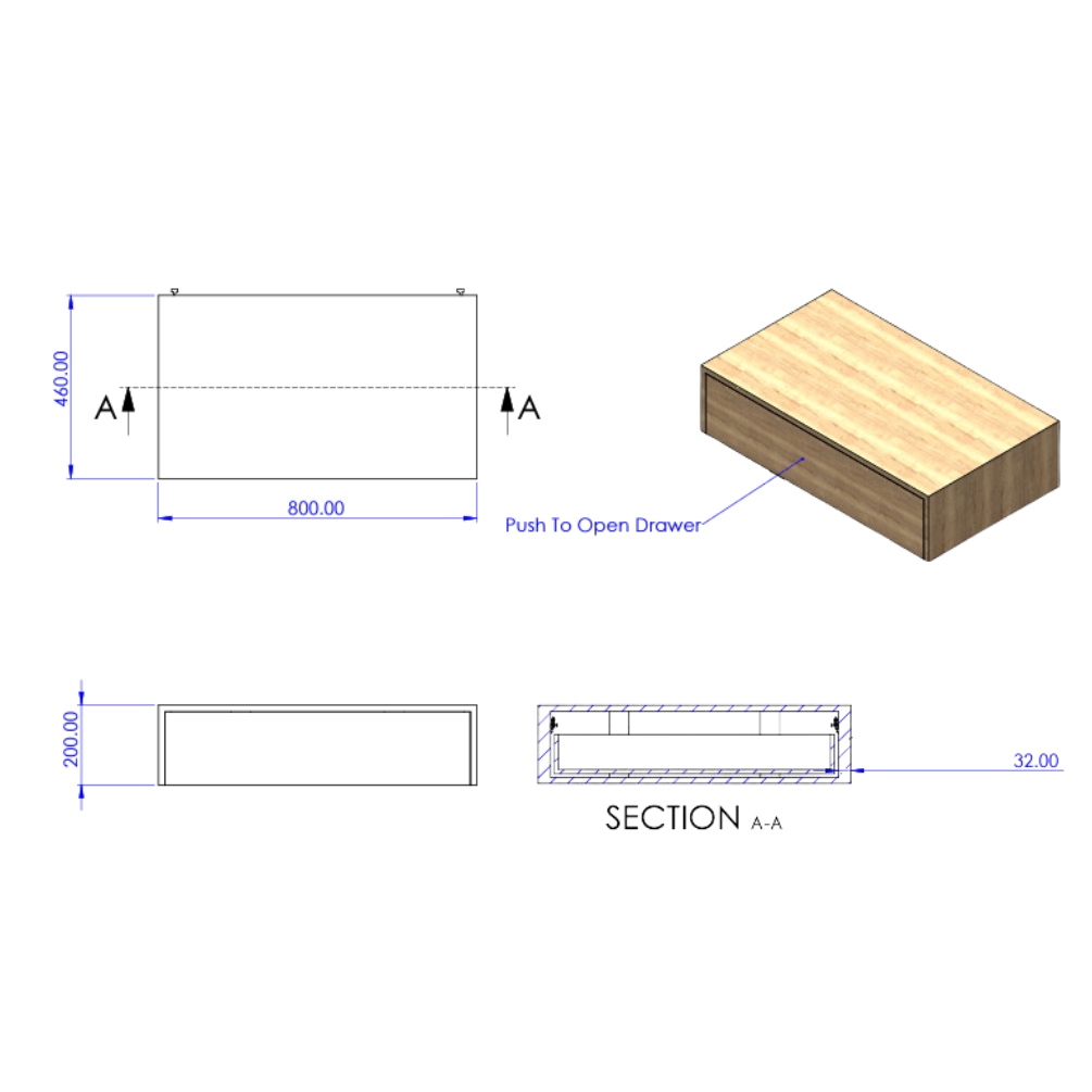 This wall mounted bathroom cabinet, which measures 800mm in width and 200mm in height, comprises of a single push to open drawer that can comfortably house your cosmetics or toiletries, while offering an open shelf ideal for spare bath towels or toilet rolls. Designed to be paired with an Abacus Concept Cloud Shelf similarly showcasing an alluring Lava wood effect, or inserted below the Abacus Concept Pure Basin, the streamlined appearance yet copious storage the Base Unit provides the practicality of a traditional vanity unit without having to compromise on the open design of the wall mounted basin above it.