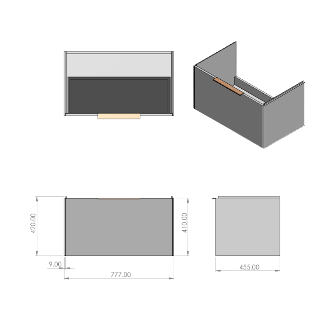 This wall hung vanity unit, which measures 777mm in width and 420mm in height, comprises of a single soft closing drawer capable of storing all your toiletries and cosmetics, or even some spare bath towels, as well as a flat worktop that can comfortably accommodate a variety of countertop basins alongside their brassware. While the front and sides of the product are painted in a magnetic ocean blue, for its worktop you can choose between a rustic Halifax Oak, a rich Lava wood effect or a clean matt white finish, giving you the freedom to imbue the unit with a touch of texture or a sleek, contemporary look.