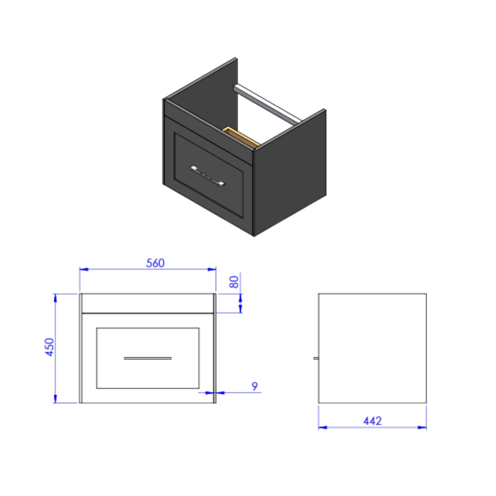 The defining feature of this wall hung vanity unit, which measures 560mm in width and 450mm in height, is the frame of Shaker inspired wooden panelling on front of this single soft closing drawer that evokes its period aesthetic, while accentuating its principal function. Opening the drawer reveals the plentiful storage space inside, ideal for tidying away your toiletries and cosmetics, while its flat worktop is capable of accommodating a countertop basin alongside your chosen brassware.