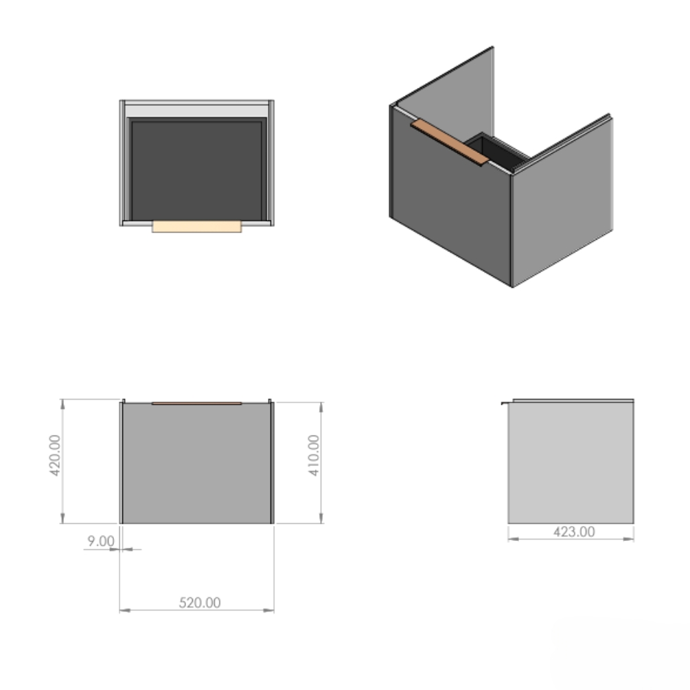 Measuring 520mm in width and 410mm in height, this wall hung vanity unit comprises of a single soft closing drawer, which pulls out to provide ample space for your toiletries and cosmetics, as well as a flat worktop that can comfortably accommodate a variety of countertop basins and brassware. While the sides of the unit are finished in calm matt white, you may choose between a rich Lava or traditional Halifax Oak for your worktop to lend the fixture some texture and warmth.