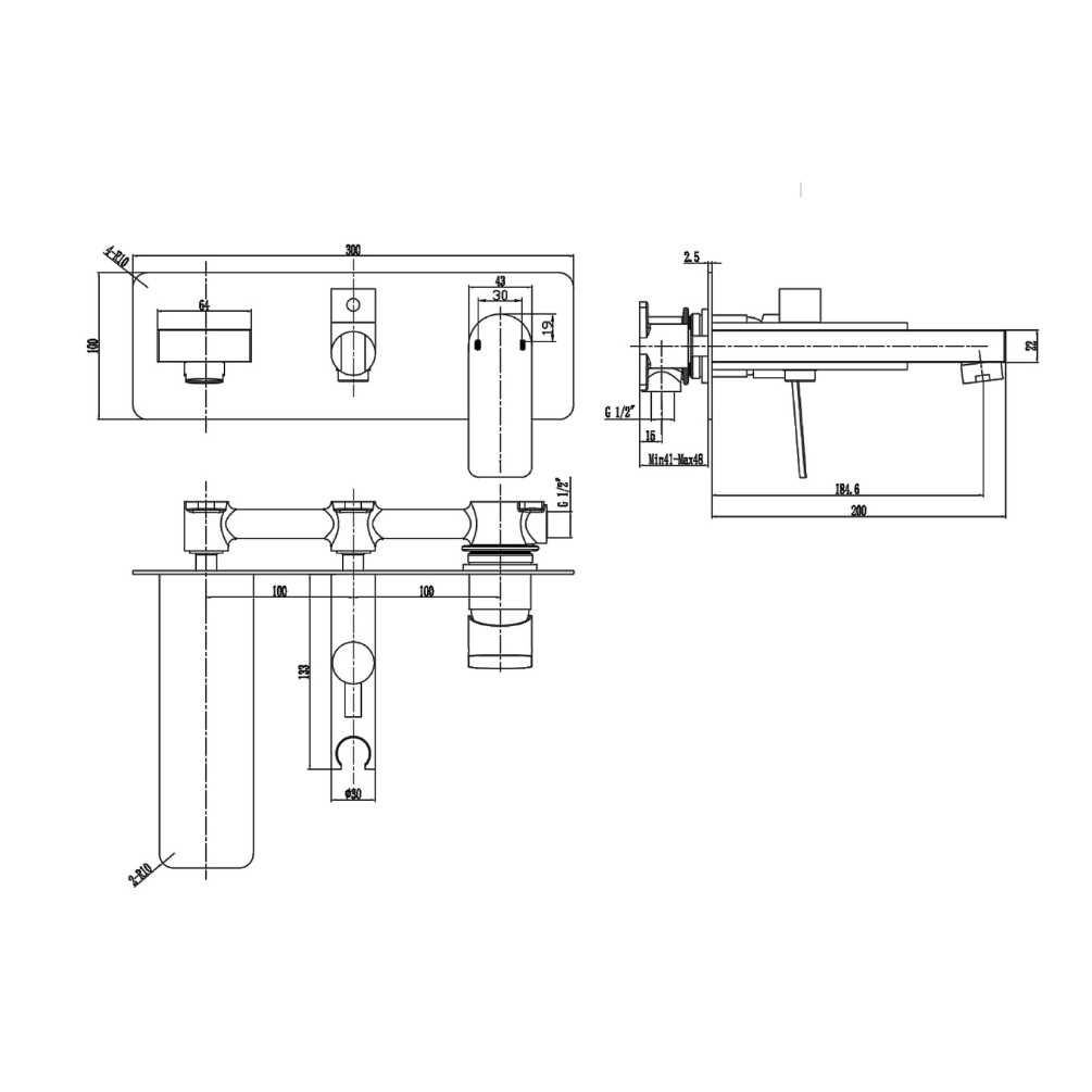 With dimensions of 300mm in width and 100mm in height, this bath shower mixer features a sleek, rectangular backplate that radiates modern sophistication. On the right side of the backplate, a rounded lever handle facilitates intuitive control. This handle is designed to twist and lift for easy adjustment of water temperature and flow, directing it to the chosen outlet. Centrally located is a cylindrical bracket that holds the handset shower and the diverter valve, enabling a seamless switch between the handheld shower and the bath spout.