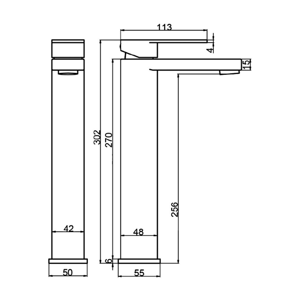 Measuring 42mm in width and 302mm in height, the cubic tap body of this tall basin mixer features rounded edges to soften its otherwise angular design. This sculptural signature is echoed in the shaping of its rectangular spout, which has equally curvaceous corners and edges that smooth off its sides without compromising on its geometric look.
