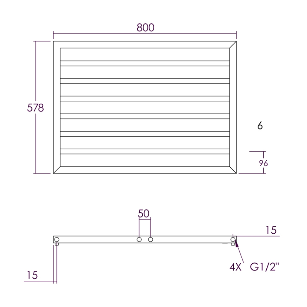 Measuring 800mm in width and 578mm in height, this towel radiator comprises of a rectangular frame that houses six cylindrical bars, maximising the surface area of the product such that it can efficiently supply heat to your space, while providing ample room to hang and dry your bath towels.