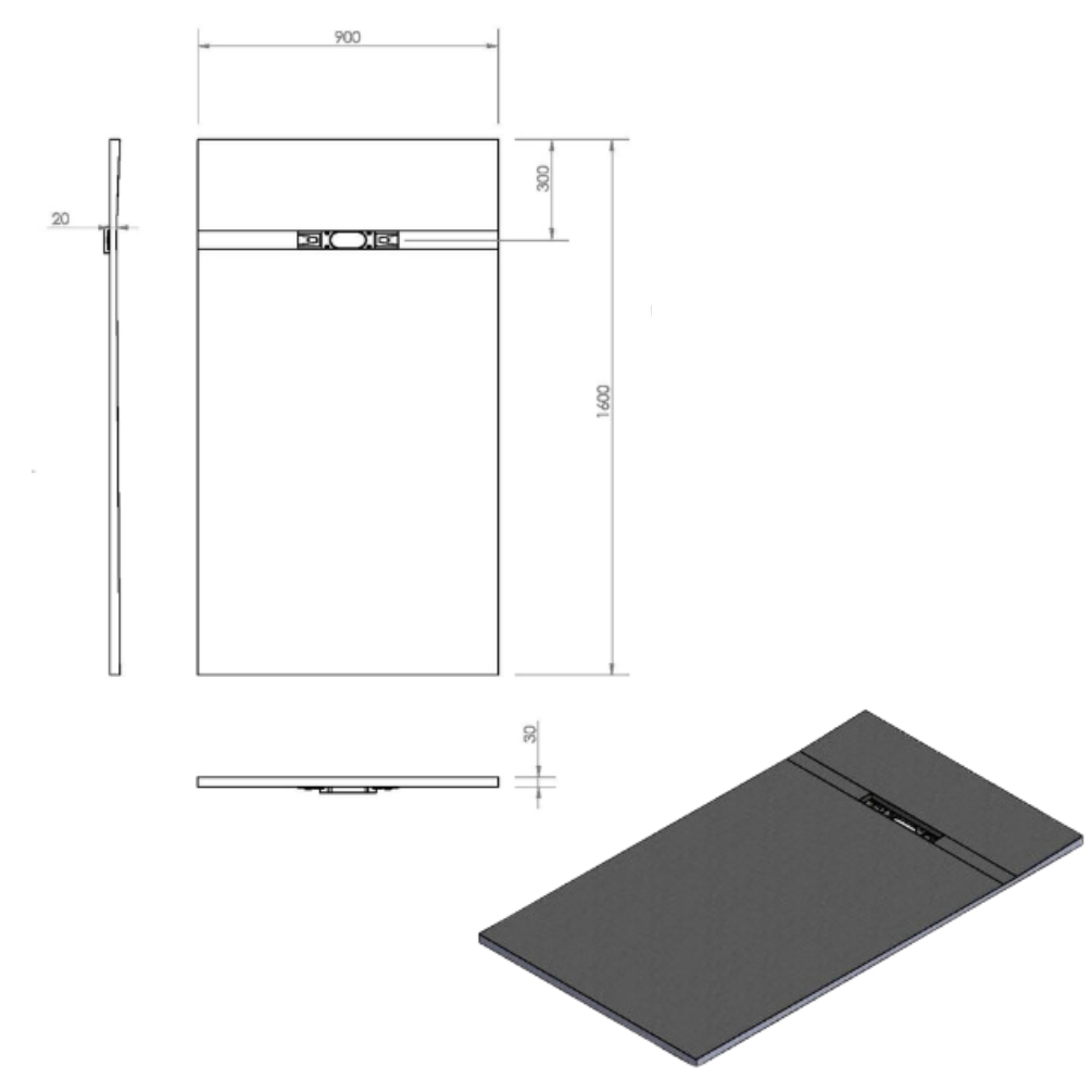 Featuring a robust wetroom former that’s expertly crafted to fit snugly between floor joists and tiling, this design comes in an elongated rectangular shape measuring 1600mm in length and 900mm in width. At just 30mm high with a level access profile and a cleverly engineered gradient, it directs water straight to the drainage outlet. Additionally, say goodbye to barriers and hello to a stunning, fully accessible wetroom that caters to everyone, regardless of age or ability.