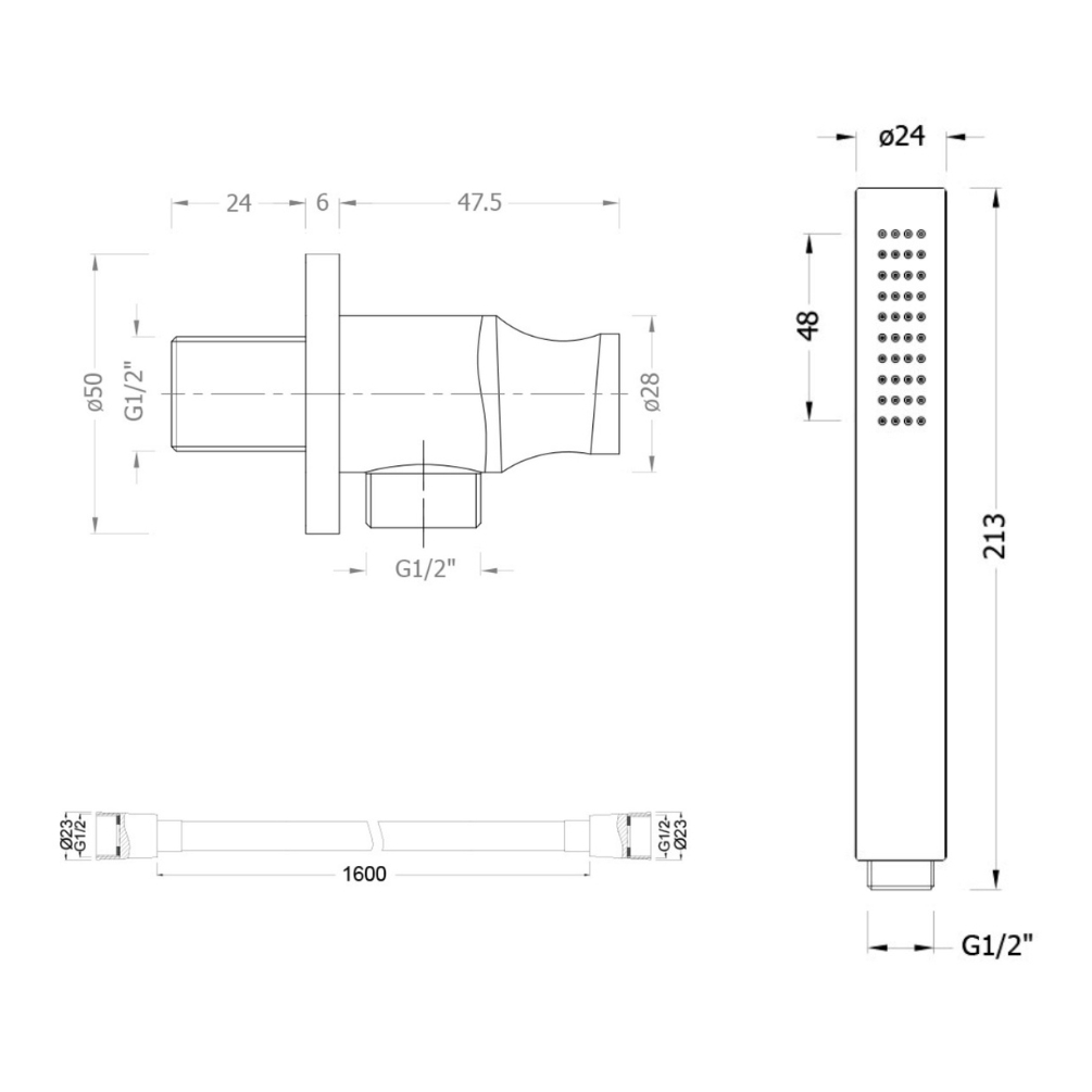 This shower set features three key components. Firstly, it includes an ergonomic microphone-style handset shower that guarantees user-friendliness and outstanding water coverage. Secondly, a sturdy shower outlet and holder system acts as both a bracket for the showerhead and a concealed wall outlet for connecting the shower hose to your water supply. It is designed to optimise space and improve usability, complementing the rounded design of the shower handset. Lastly, a flexible PVC shower hose available in two lengths attaches to the outlet for convenient usage while accommodating your spatial needs.
