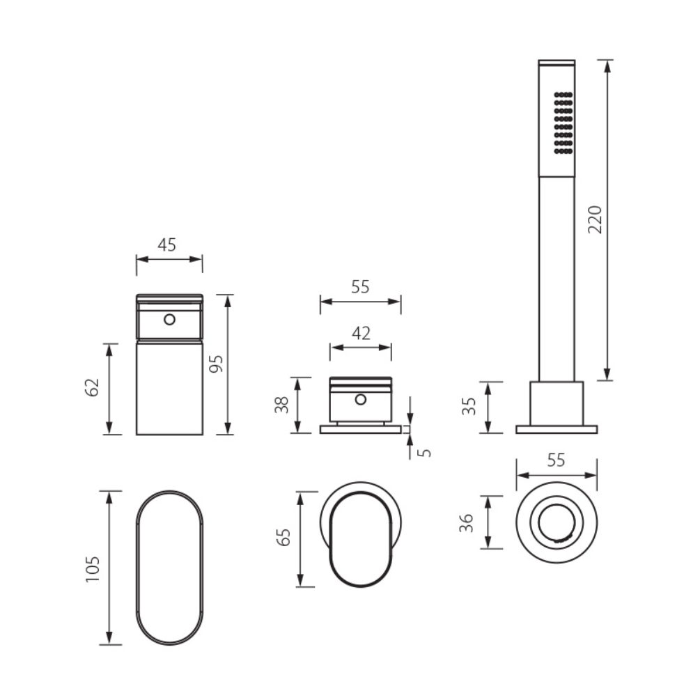 As well as the lever handle and the handset shower, which seamlessly slots inside its integrated bracket when not in use, this brassware set includes a similarly oval shaped diverter valve that pulls out and pushes back in to redirect the water flow. While the handset appears to be deck mounted, in truth it is concealing an integrated shower hose underneath, such that you can pull it out then neatly tidy the hose out of sight again when you have finished using it.