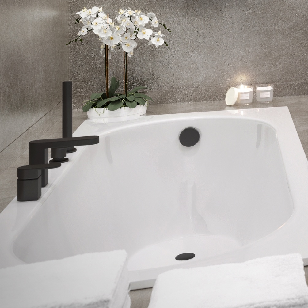 Abacus Ki Matt Black 4 Tap Hole Deck Mounted Bath Shower Mixer