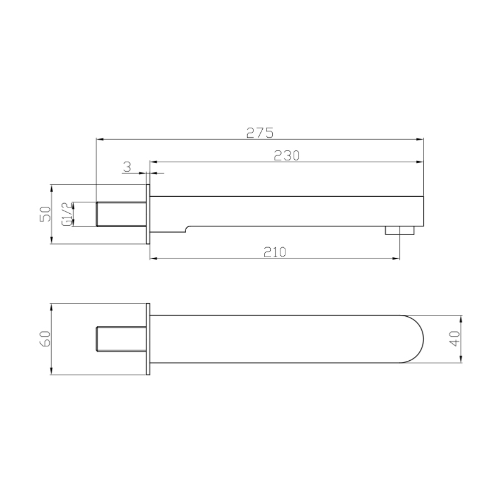 Measuring 40mm in width and 230mm in its projection, the oval shaped outline of this wall mounted bath spout flaunts the contrast between its soft edges and flat surfaces, culminating in the signature geometric appearance that unites the brassware from the Ki collection.