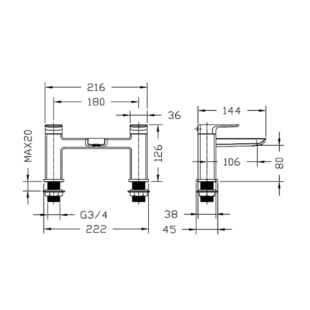 Adorned by two slimline lever handles, the Logic Deck Mounted Bath Filler is a gorgeous piece of brassware from the Abacus range that would embellish any bathing area, elevating the aesthetic and function of any modern bathroom.