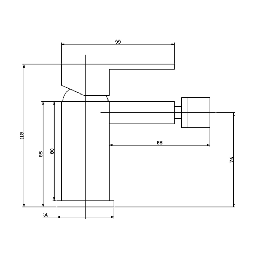 The square shaped tap body of this bidet mixer tap, which measures 35mm in width and 115mm in height, achieves its geometric silhouette through the intersection of its sleek sides and aforementioned straight edges, echoing the design language of its fellow products from the Plan collection.