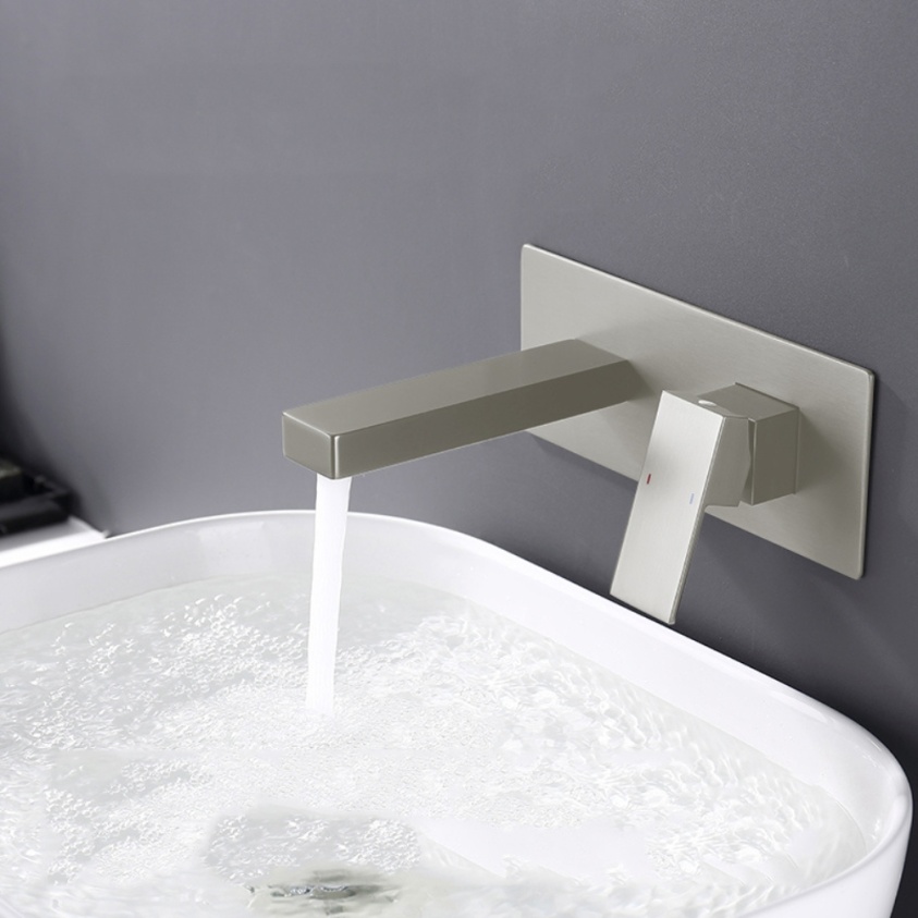 Finished in brushed nickel, this Plan Wall Mounted Basin Mixer would provide the perfect complement for any other products sporting the same finish.