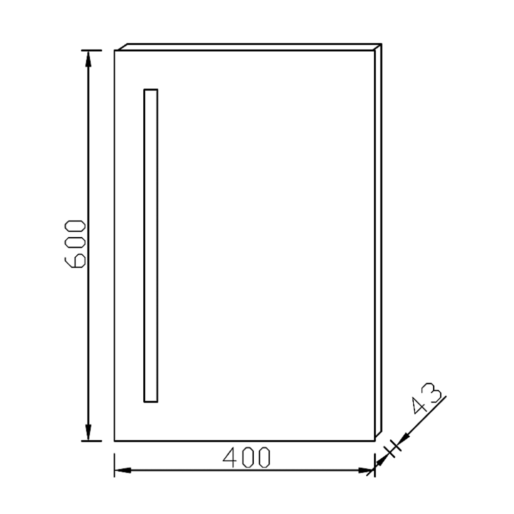 Measuring 400mm in width and 600mm in height, this rectangular mirror is embellished by a single strip of LED lights running parallel to its left hand side, which is operated via the infrared sensor switch concealed on the underside of the mirror edge.