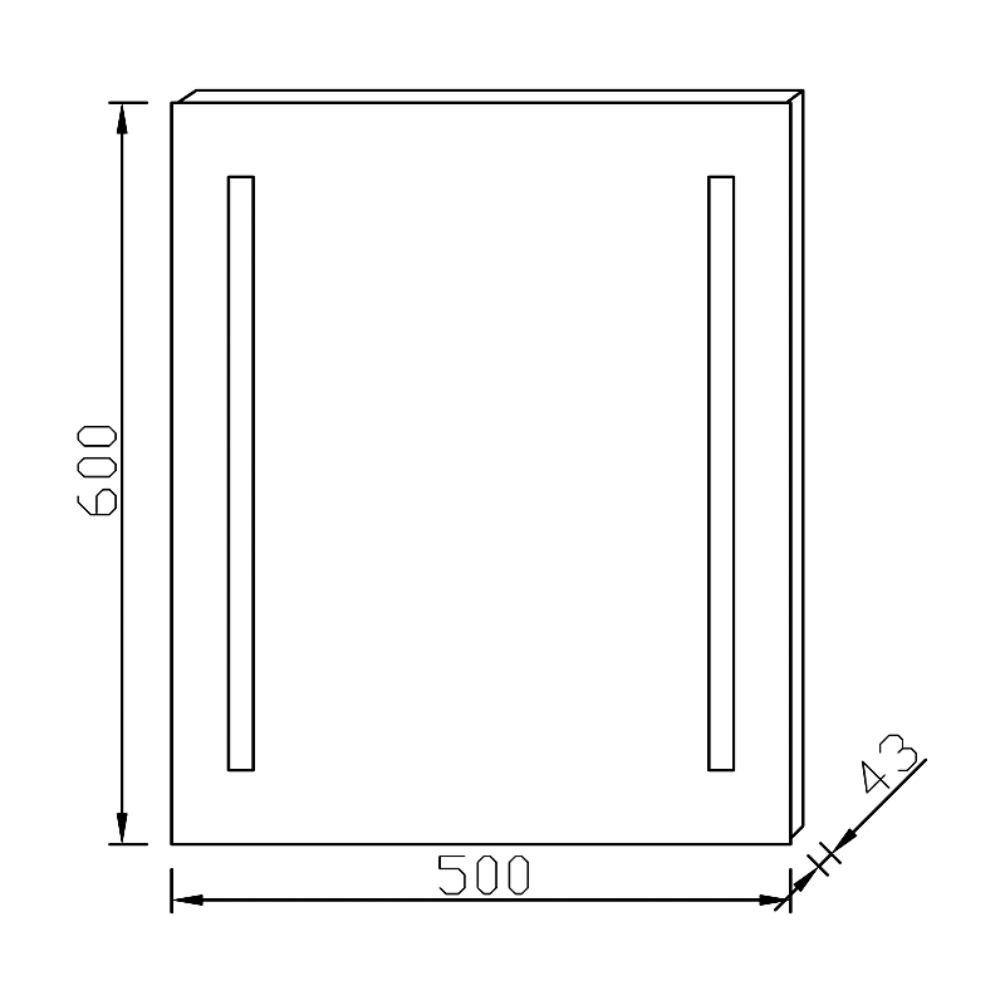 The defining characteristic of this rectangular mirror, which measures 500mm in width and 600mm in height, is its two strips of LED lights that line either side of the mirror face. Holding your hand underneath the mirror will trigger its infrared sensor, which alternately activates and deactivates the illuminated mirror, introducing its cool white light to your space.