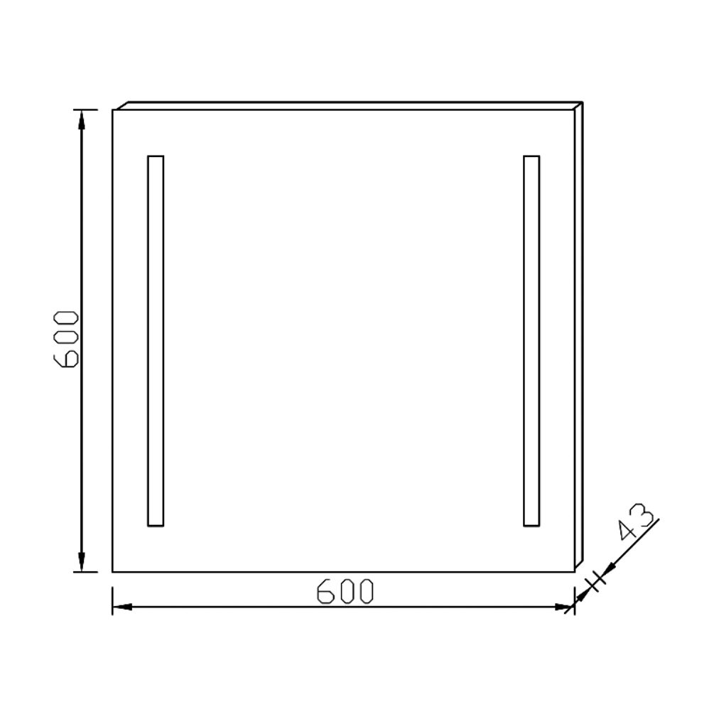 Measuring 600mm in its width and height, the face of this square mirror is embellished by two strips of inlaid LED lights, which are switched on and off via the infrared sensor switch located at the base of the mirror.