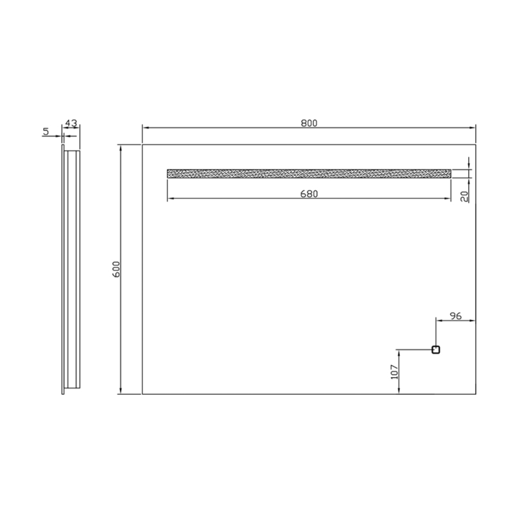 In addition to the single strip of inlaid lights that stretches across the upper edge of this rectangular mirror, which measures 800mm in width and 600mm in height, numerous colour changing LED lights are concealed behind the mirror face to illuminate the surrounding bathroom space, as well as the individual currently using the mirror.