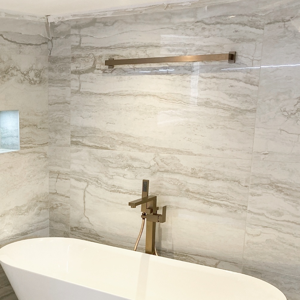 Measuring 790mm in width and projecting only 55mm from the wall, the rectangular arm of this towel rail provides plenty of room for multiple towel to be hung or dried, while still leaving some of its beautiful brushed bronze frame on display.