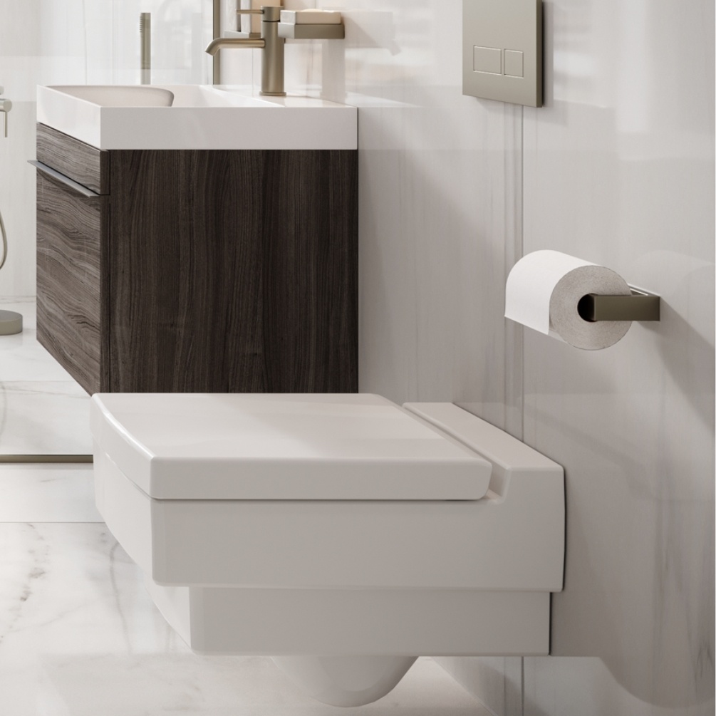 Measuring 153mm in width and 80mm in depth, this rectangular toilet roll holder features a subtle lip at its open end to prevent your fresh rolls from falling from its sleek brushed nickel arm, while keeping it easier than ever to remove your rolls once they are depleted.