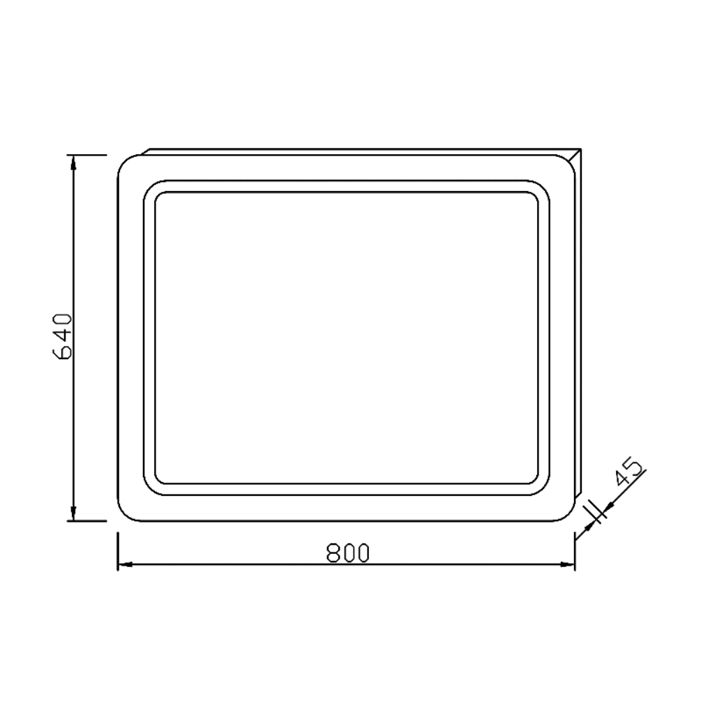 Adorning the surface of this rounded rectangular mirror, which measures 800mm in width and 640mm in height, is a similarly shaped perimeter of LED lights, accentuating the contemporary shape of the fixture while providing crisp white illumination to you while completing your daily rituals.