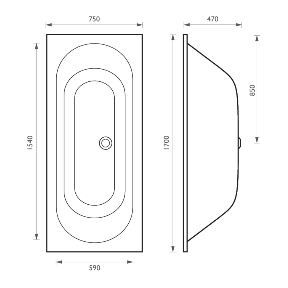 The rectangular frame of this double ended bath, which measures 1700mm in length and 750mm in width, surrounds an oval shaped bathtub, its dual sloping sides giving you the freedom to stretch out at either end, or recline opposite your significant other as you settle in for an intimate yet comfortable soak.