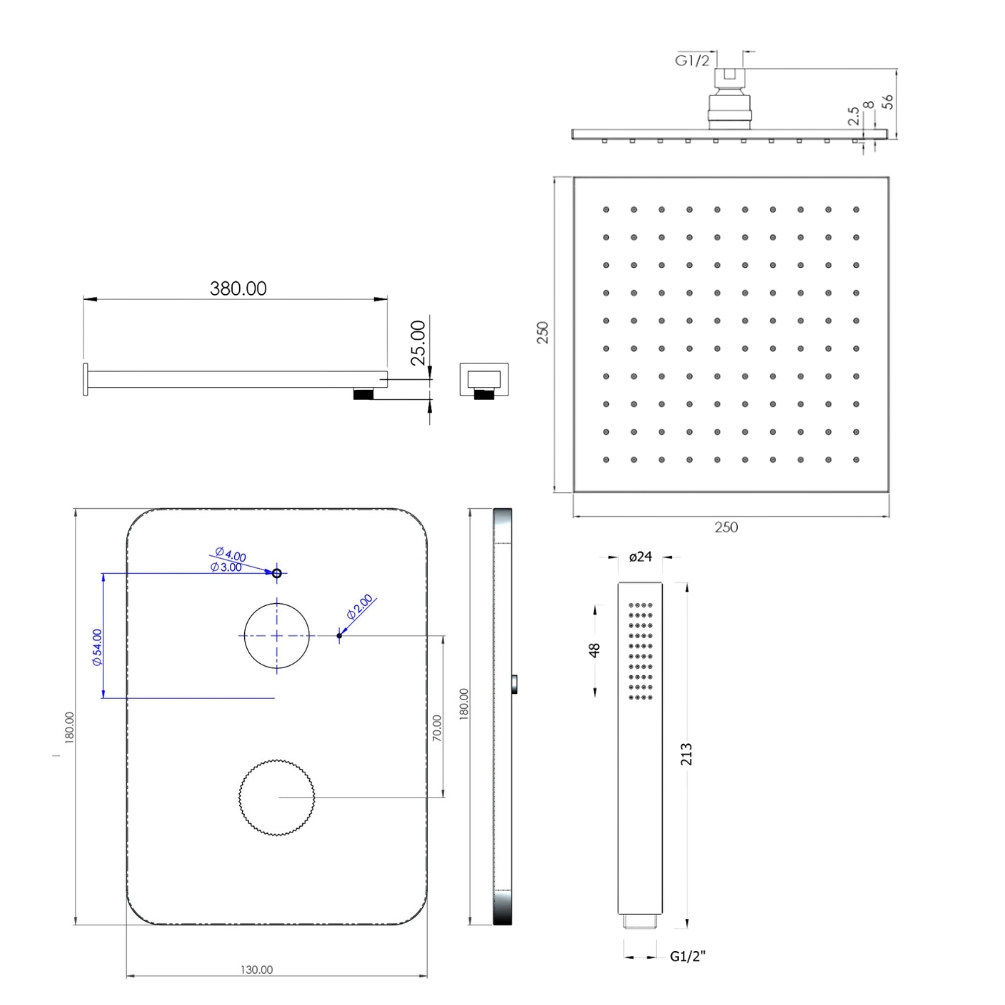 Attached to the wall of your enclosure via its 380mm long shower arm, the square face of this wall mounted shower head feature multiple rubberised nozzles, which you can brush with your hand while the water is running to remove any limescale, as well as mitigate the build-up of any more dirt over time.
