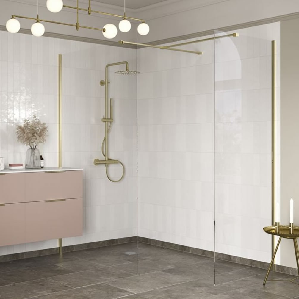 The Apex screen features 8mm toughened glass with an easy clean treatment, making it a strong and durable showering option, whilst also being easy to clean and maintain. The wall profile and bracing arm have a beautiful brushed brass finish, that is sure to add elegance and sophistication to your space and will match a range of bathroom interiors. Why not view our brushed brass taps, showers and accessories for a fully tailored look.