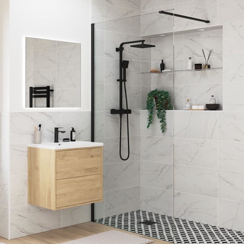 Transform your bathroom into a luxurious haven with the stylish Apex 760mm wetroom screen, featuring 8mm toughened glass with an easy clean treatment, making it easier to maintain and keep clean. The sleek and stylish matt black finish will seamlessly complement with a range of bathroom interiors, why not coordinate with our range of matt black taps, showers and accessories to complete the look of your bathroom.