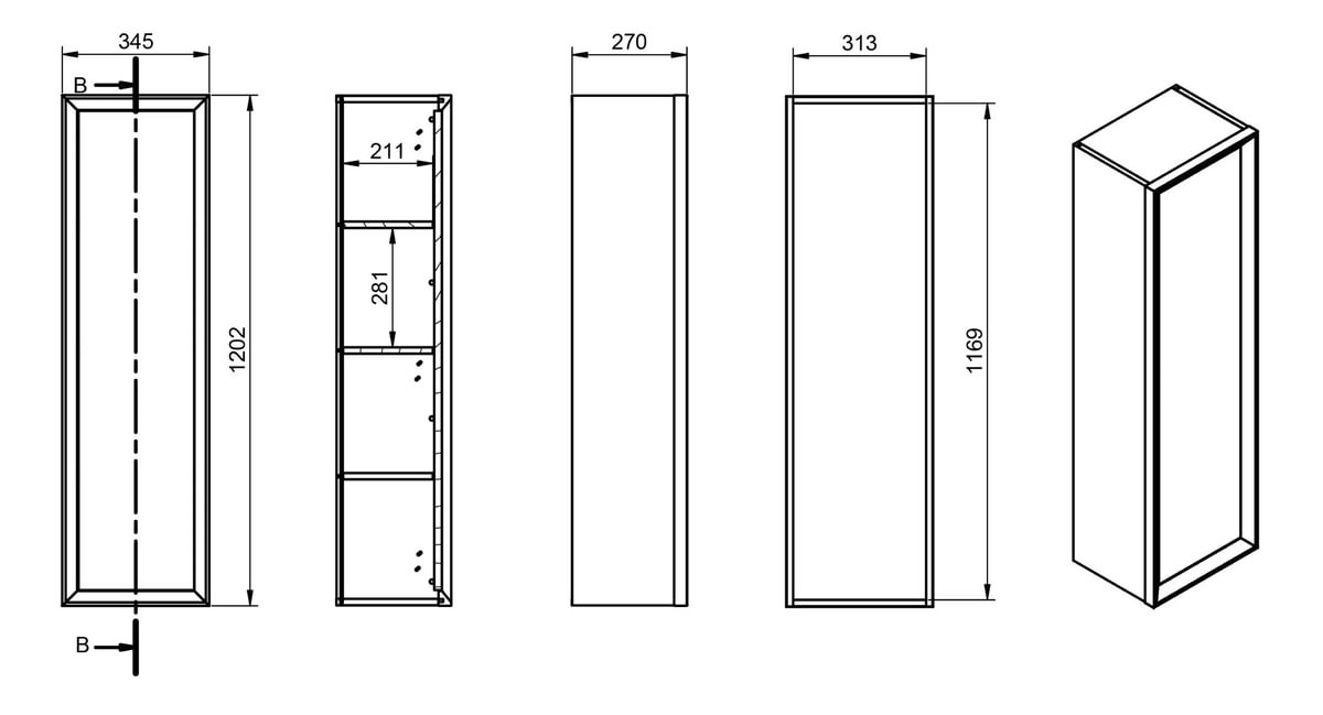 Storing your bathroom essentials in style, it measures 1200mm tall, 345mm wide and 270mm in depth. The tall unit is mounted to the wall, saving on floorspace and making it suitable for smaller-sized bathrooms.