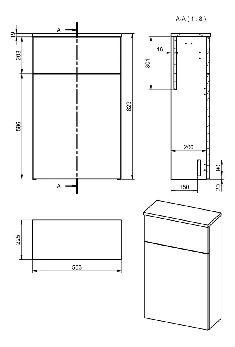 The WC Unit measures 829mm high, 503mm wide and has a depth of 225mm, allowing space instead for the chosen back to wall concealed cistern. It even has a flat worktop to place a plant or ornament on, or for extra storage space, to add a decorative touch.