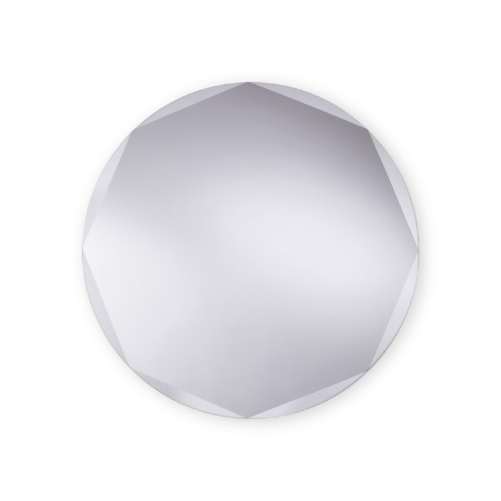 Along the circumference of this round mirror, which measures 580mm in diameter and projects only 4mm from its mounting, is its intricate bevelled detailing, giving texture to its otherwise sleek and unassuming accessory. Straight lines sculpt an octagonal design around the outside of the circular mirror face, offering an alluring point of contrast that is sure to attract the attention of any visitors to your bathroom.