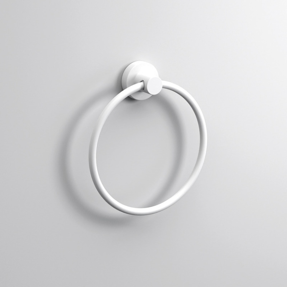 The circular frame of this towel ring, which measures 180mm in diameter, provide plenty of space for a single towel to stored or hung to dry without concealing too much of its design such that its clean white aesthetic remains on display.