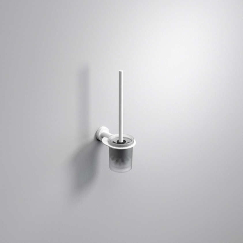 Measuring 103mm in width and 378mm in height, the circular wall bracket and cylindrical handle of this toilet brush set are covered in a smooth matt white, accentuating the clean contemporary design of the product while complementing any of your fixtures or furnishings showcasing the same finish. The frosted glass holder should have a similar effect, softening your bathroom scheme, while the ability to lift it from the holder allows to clean it as easily as you would any other piece of glassware.