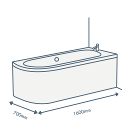 1600mm baths are one of the more common bath lengths and are ideal for standard-sized spaces. The 5ft 2in dimension provides enough space for sitting or relaxing back into, while not requiring a huge space or leaving the rest of the room a bit of a squeeze to move around.