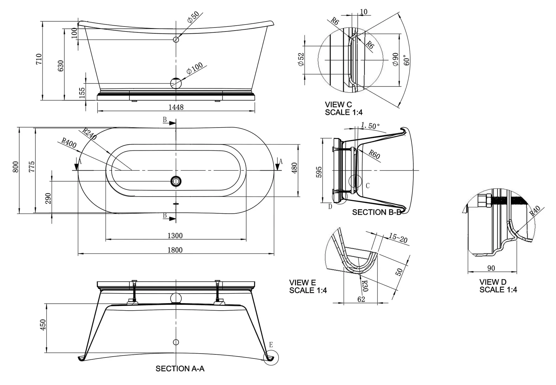 This double-skinned 1800mm acrylic bath by BC Designs features a traditional shape with smooth, elegant curves. Sometimes called a bateau bath, this freestanding bath model will serve as a gorgeous bathroom focal point.