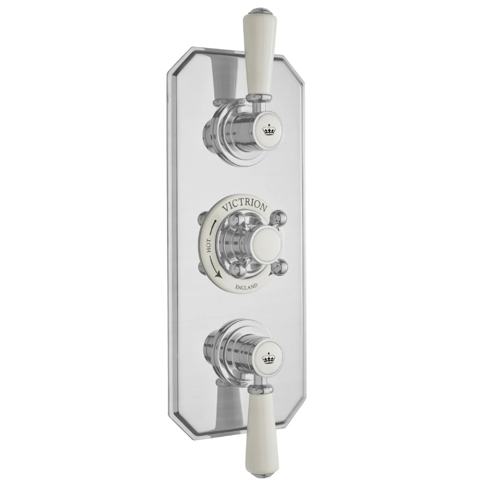 Manage water flow in your shower with sophistication using the BC Designs Victrion Brushed Chrome Triple Concealed Shower Valve.