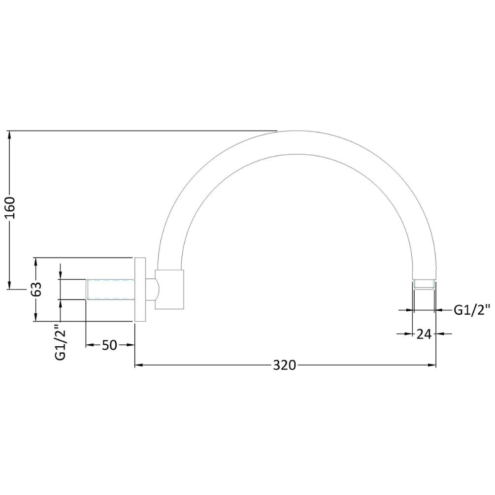 Securely mounted to the wall on a circular disc, it features a 320mm projection and standard 1/2-inch screw threads at the end, allowing the shower head of your choice (sold separately) to be easily attached while coordinating with surrounding shower components.