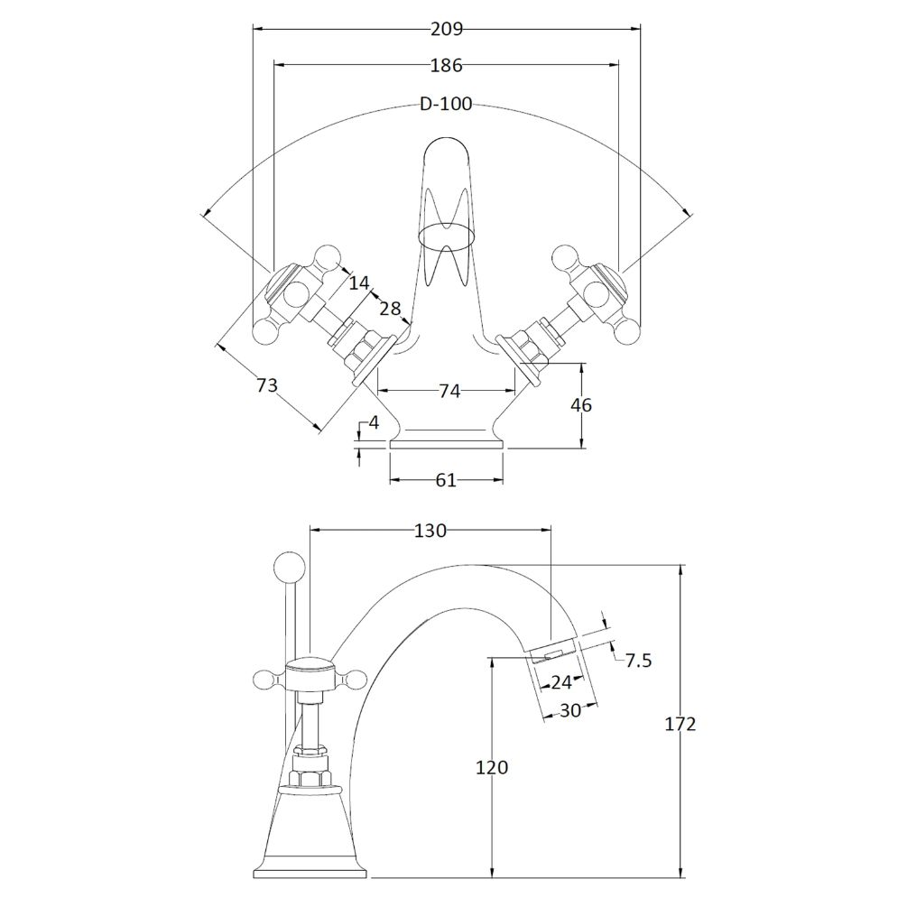 Made from durable brass and finished in polished chrome, this mono basin mixer tap features timeless crosshead handles with central round white indices indicating “Hot” and “Cold”.