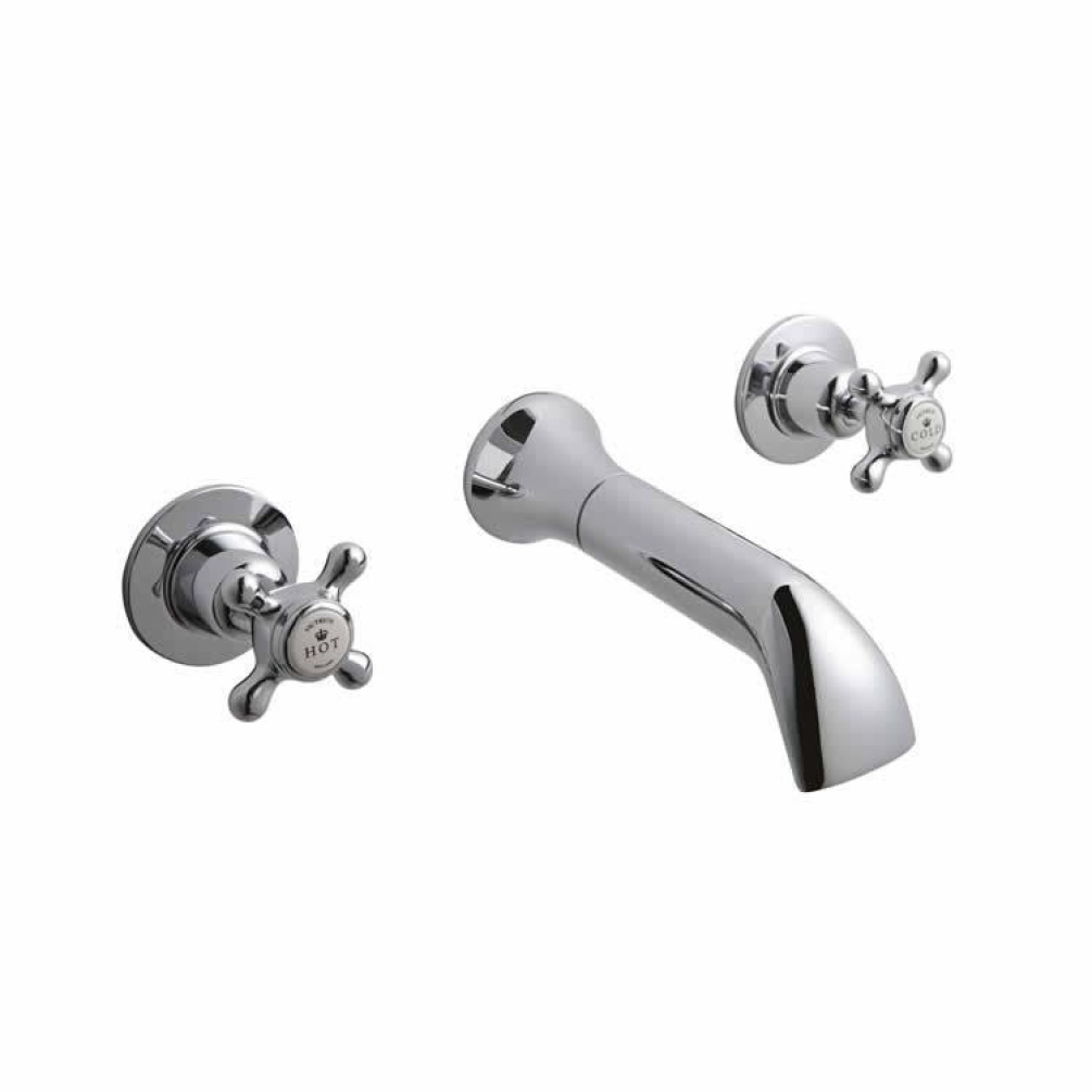 Fill your bathtub in traditional style with the BC Designs Victrion Crosshead Three-Hole Wall-Mounted Bath Filler.