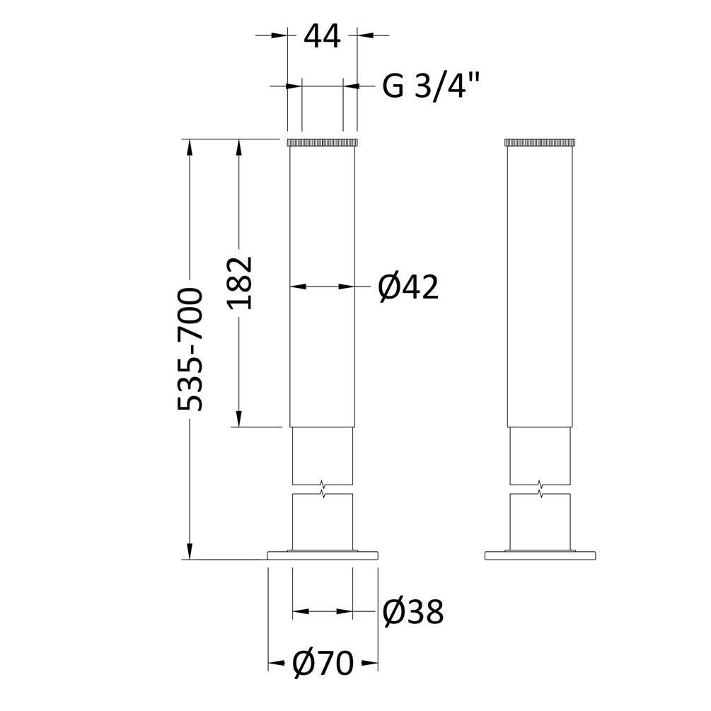 The shrouds on the legs are also adjustable between approximately 535mm and 700mm, ensuring they can be adjusted to suit the height for both flooring and bath for installation.