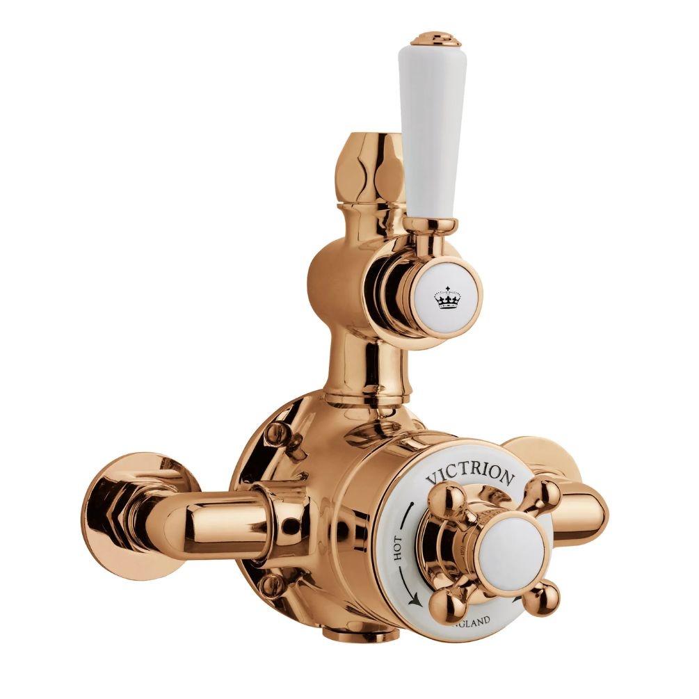 The BC Designs Victrion Twin Copper 1 Outlet 2 Handle Exposed Shower Valve is a wonderfully traditional addition to any period-style bathroom.