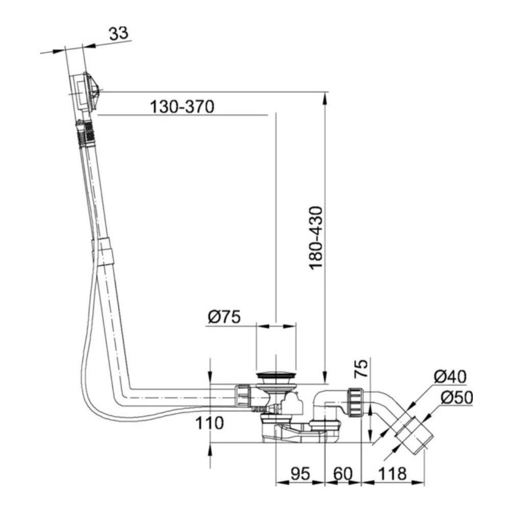 Lastly, installation is concise, even on slim bath rims, thanks to the adjustable overflow housing, an extended 725mm Bowden cable length, and a minimal installation depth of 33mm.