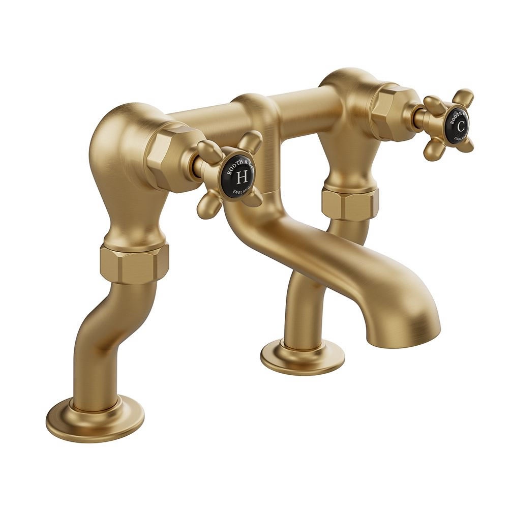 Introducing the Booth & Co. Axbridge black cross brushed brass bath filler, a stunning addition to any traditional bathroom.