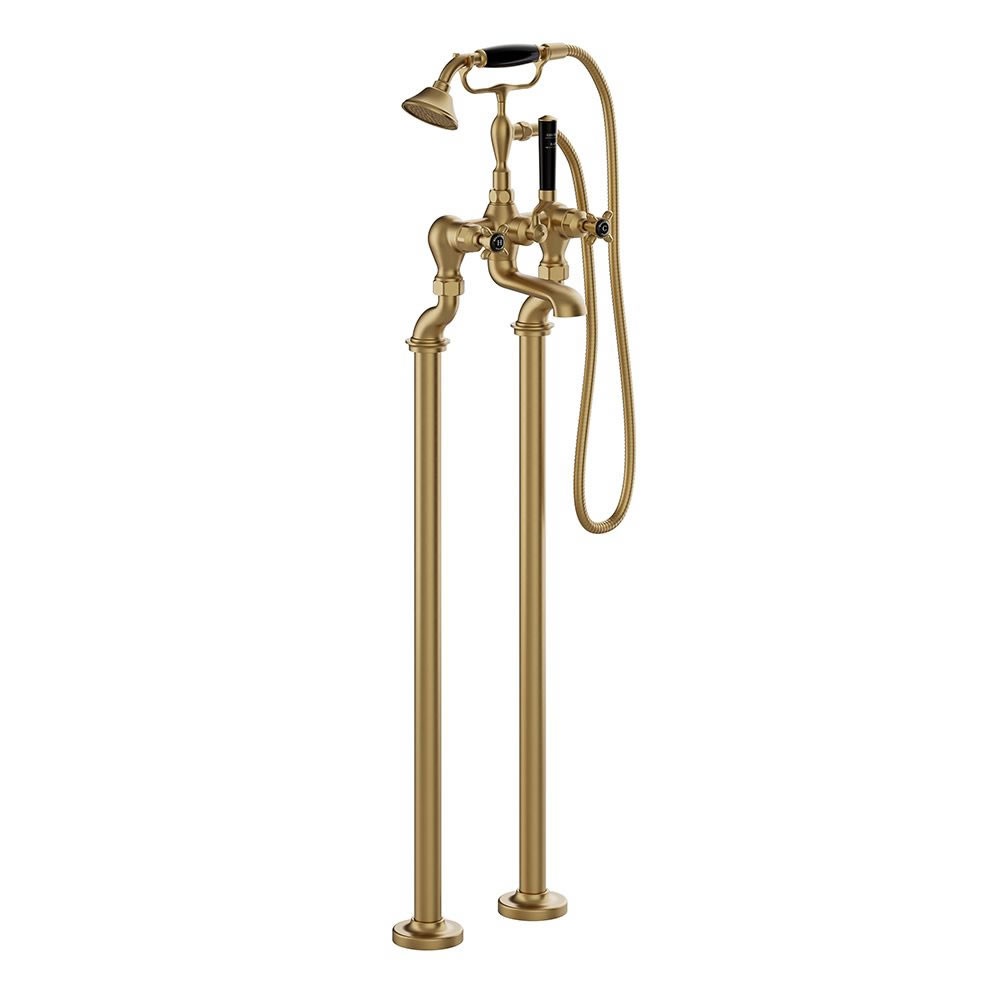 Elevate your bathing experience with the Booth & Co. Axbridge black cross brushed brass floorstanding bath shower mixer.