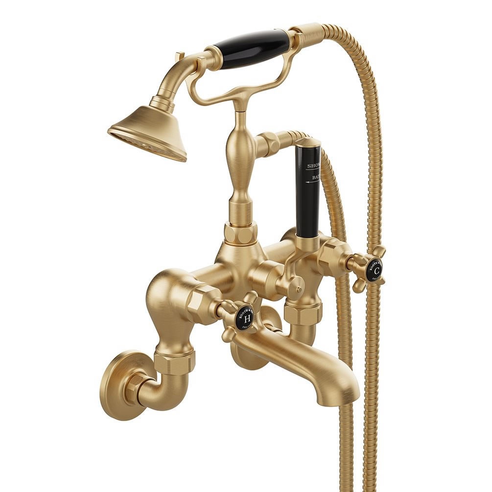 Transform your bathing experience with the Booth & Co. Axbridge Black Cross Brushed Brass wall mounted bath shower mixer.