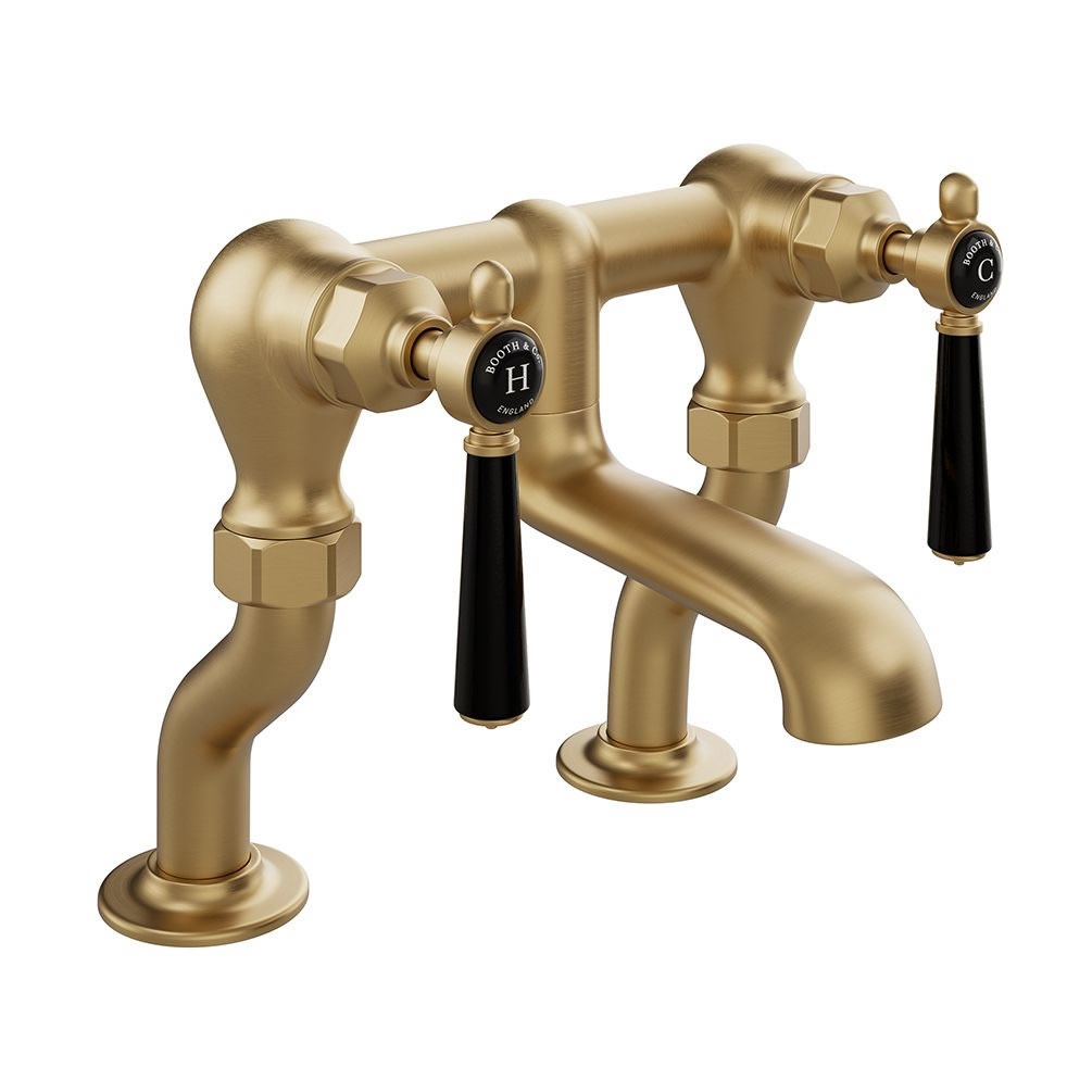 Transform your bathroom into a sanctuary of elegance with the Booth & Co. Axbridge Black Lever brushed brass bath filler.