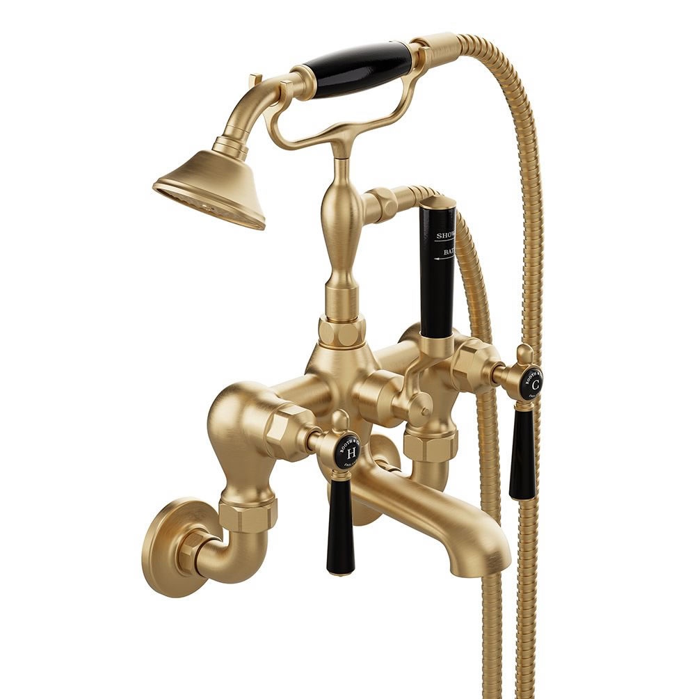 Transform your bathing experience with the Booth & Co. Axbridge Black Lever Brushed Brass wall mounted bath shower mixer.