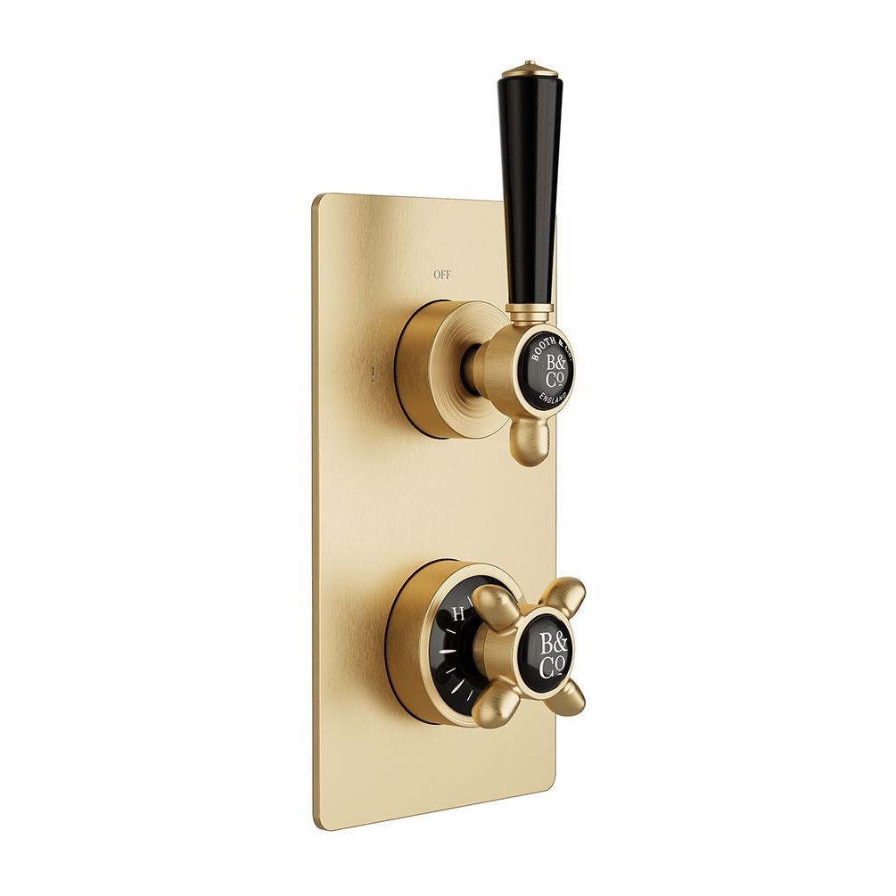 Elevate your shower experience with the Booth & Co. Axbridge Brushed Brass 2 outlet shower valve, a stunning fusion of modern design and classic elegance.