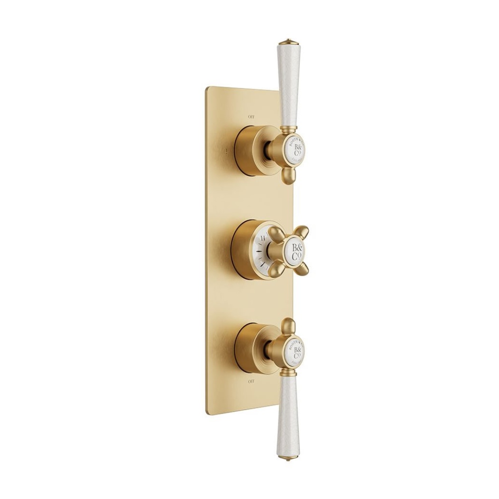 Transform your bathroom into a sanctuary of style and functionality with the Booth & Co. Axbridge Brushed Brass 3 outlet shower valve.