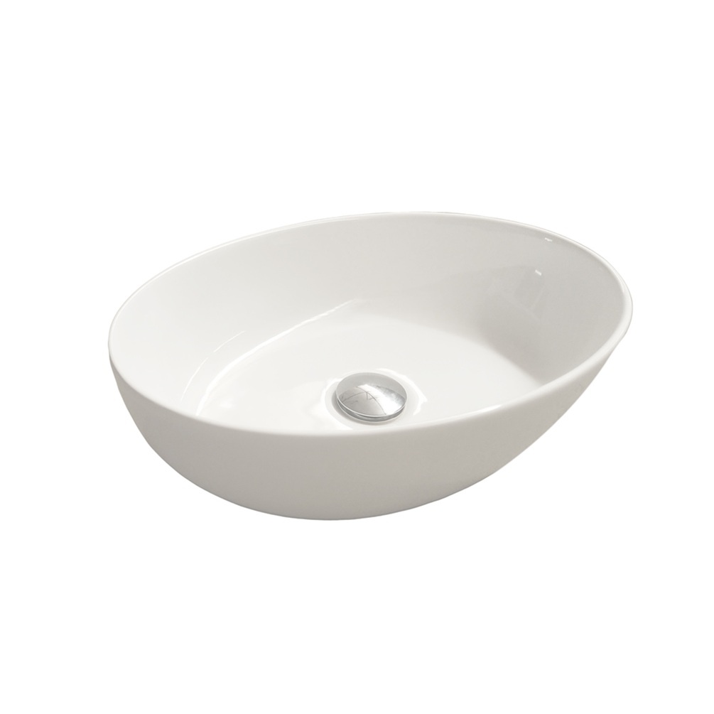 It has a smooth, curved outer surface that will suit any contemporary aesthetic, with an 8mm thick rim edge completing the vessel look. Situated in the centre of the interior of this oval countertop basin is the waste hole, ready for pairing with any chosen unslotted or universal basin waste (not included - see required products for options) since this sink has no overflow hole. No tap holes means that this bathroom sink is ideal for using alongside either a tall basin tap or a wall-mounted basin tap with sufficient projection.
