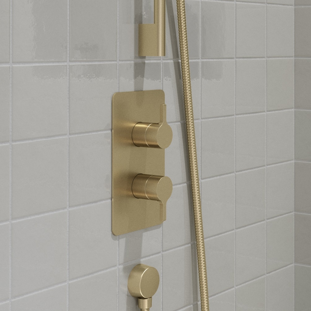 The valve itself is thermostatic, which regulates and maintains the temperature to the level set reducing the risk of unexpected changes in warmth, and is suitable for use as part of 0.5 bar medium pressure systems. Finished in PVD coated brushed brass, this offers a luxurious look that is perfect for any modern space.